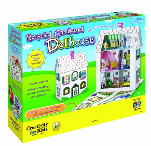 This complete set features over 100 pieces to assemble and decorate your very own dollhouse of your dreams! The dollhouse is made form recycled cardboard and even the box it comes in features a play mat on the inside! Decorate each room with the accessories provided but don't forget to add your own personal touches. This kit contains 1 sturdy cardboard dollhouse (Assembled measures 21" x 17-1/4" x 9"), 1 color-in playmate printed on inside of box, four sheets of creative color-in cut outs. Decorative papers, three sheets of punch-out and put together furniture, (1) 0.74oz glue stick, adhesive foam squares, more than forty stickers, 12 washable markers in assorted colors, and instruction/idea booklet. Conforms to ASTM D 4236. Recommended for ages 4 and up. WARNING: CHOKING HAZARD-Small Parts. Not for children under 3 years.